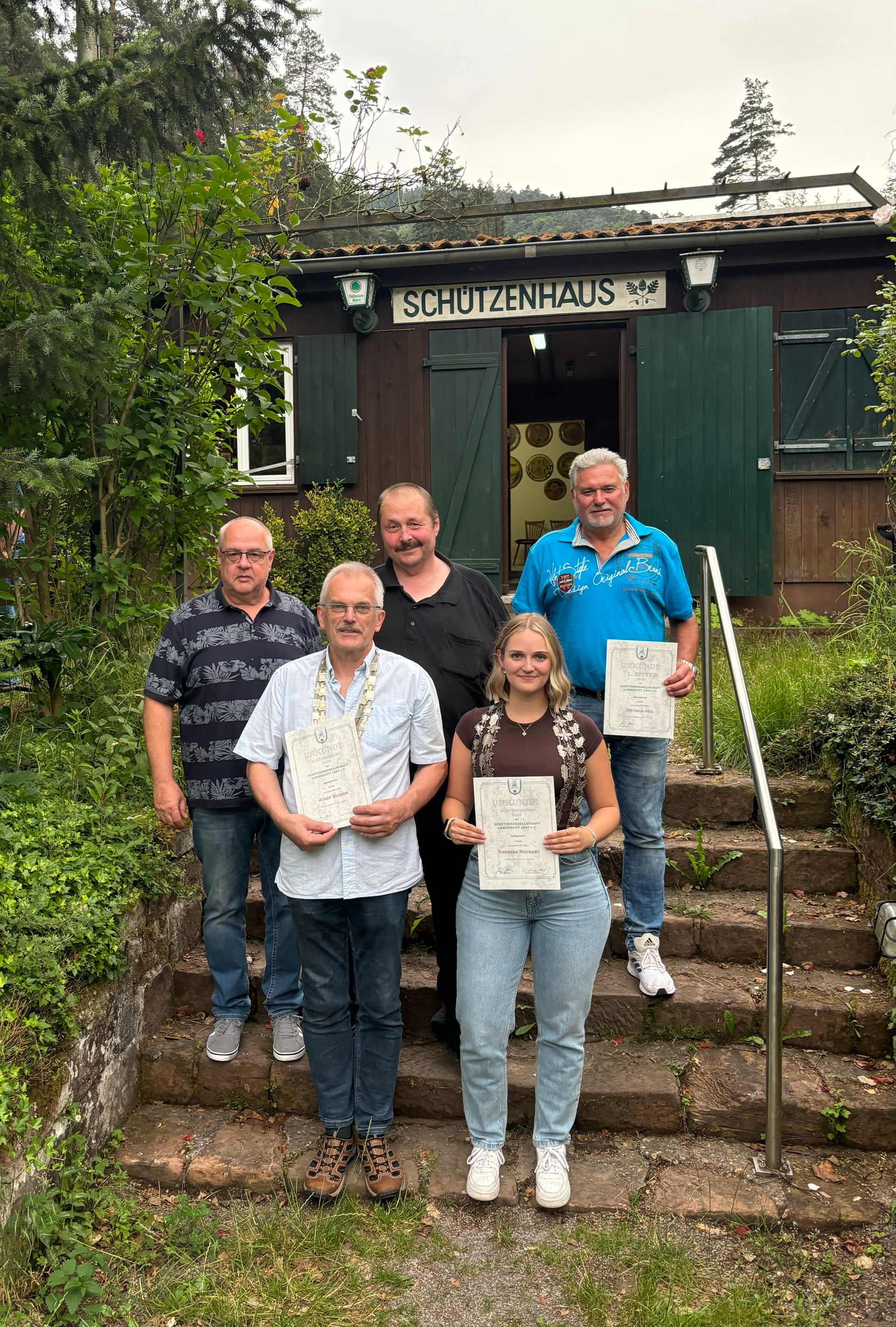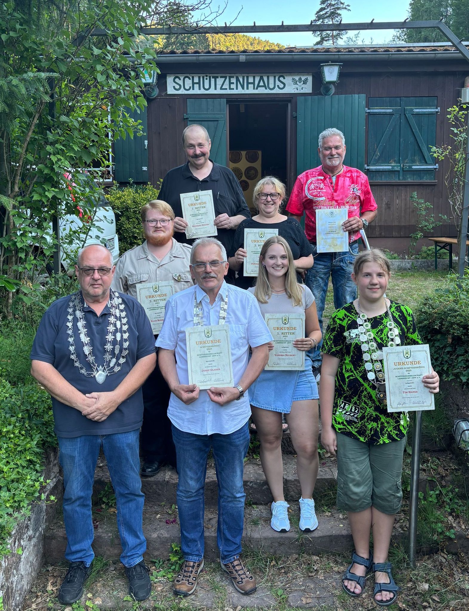 v. l. Ulrich KLeiber (Beisitzer); Reinhard Henjes (Jugendleiter); Elias Bormann (Sportleiter); Simon Lukas Nowotny (stv. Sportleiter); Daniela Schneider (Schatzmeisterin); Dietmar Heil (Schützenmeister); Dr. Michael Bormann (Schriftführer); Josef Glaser (Oberschützenmeister)